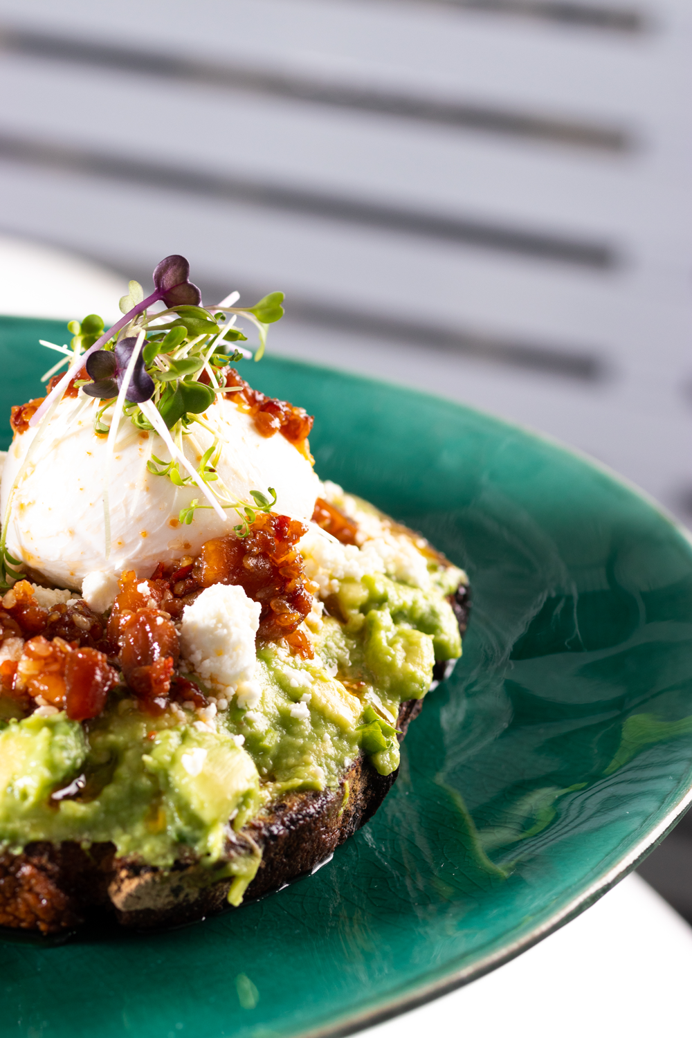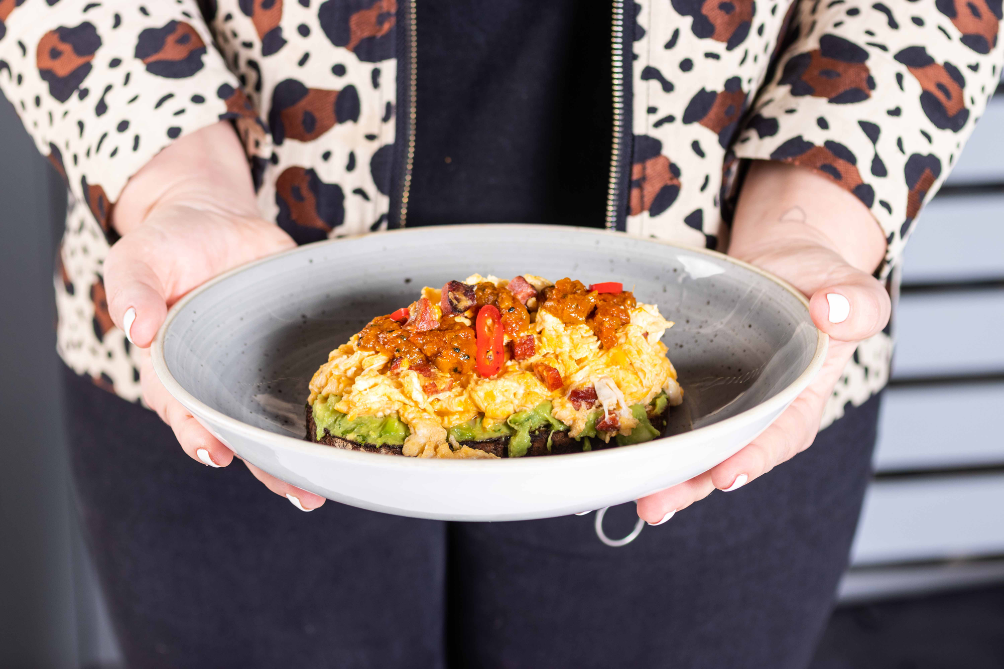 Avocado smash, pickled red chilli, tomato, nigella seed, turmeric on toasted sourdough 1 (wheat), 3, 10, 12