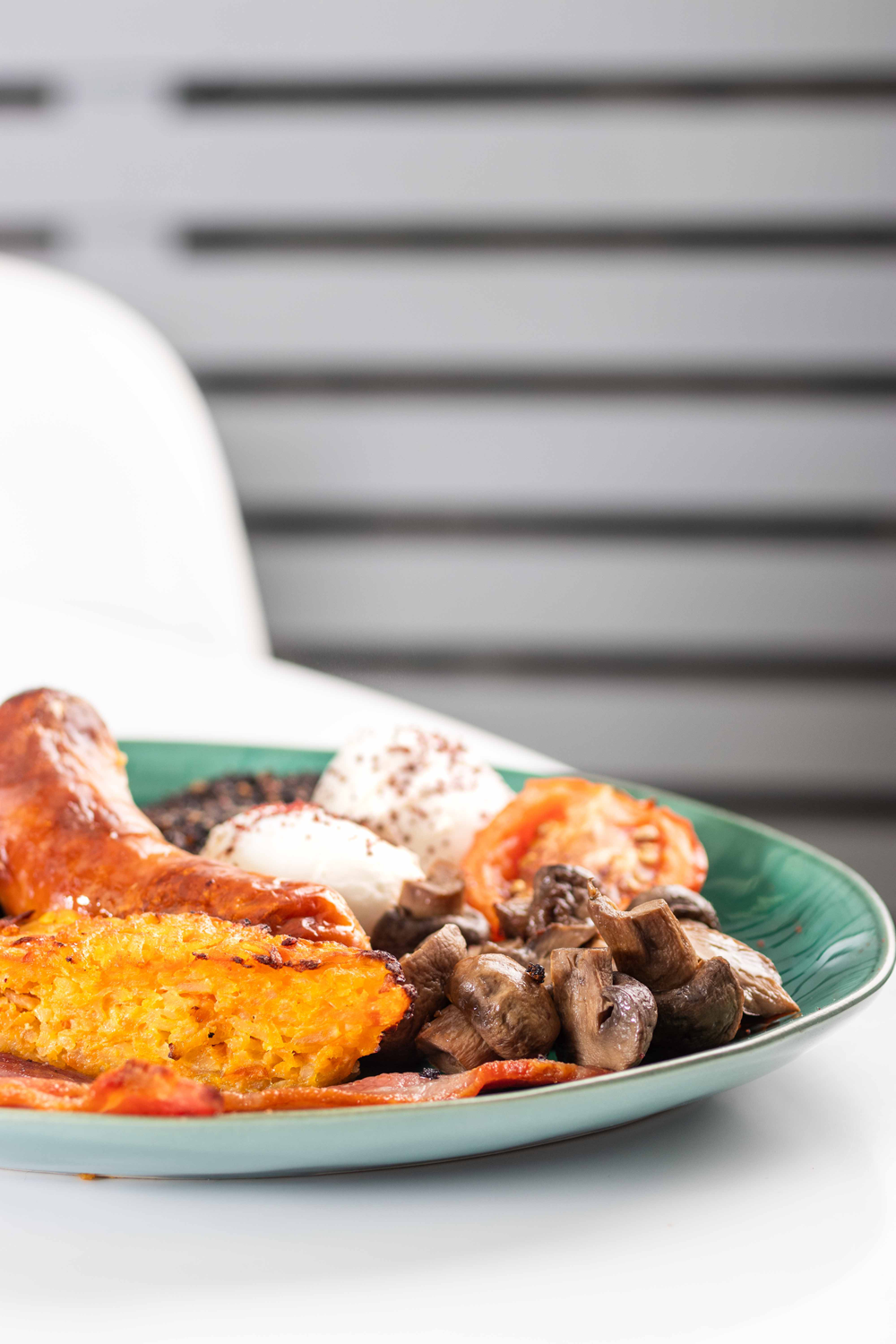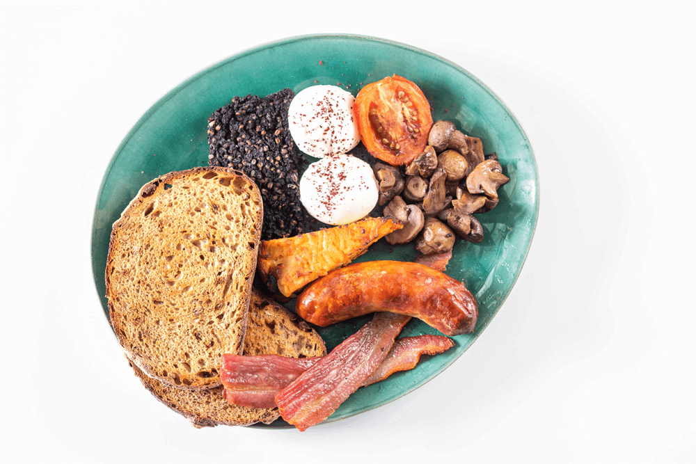 Inch House black pudding, poached eggs, Crowes streaky bacon, sausage, sweet potato cake roasted tomato, mushroom, sourdough toast 1 (wheat, Barley), 3, 6, 12