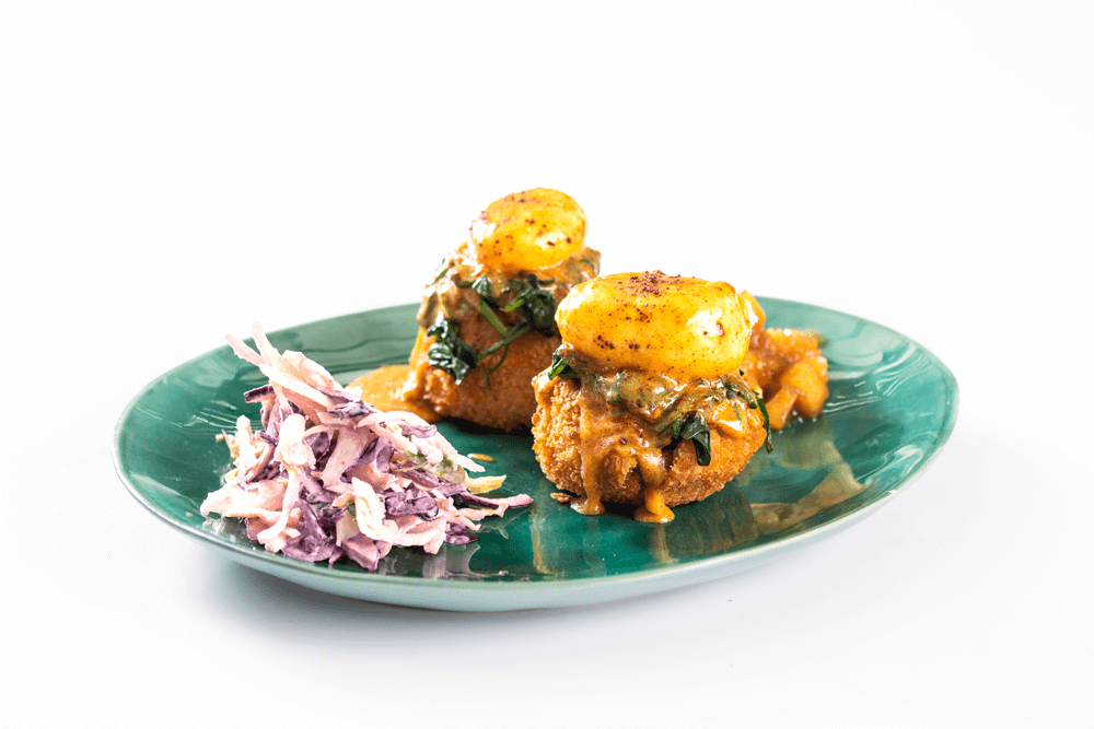 Poached Egg, spinach, lime, chili and hollandaise 1 (Wheat), 2, 3, 4, 6, 7, 12