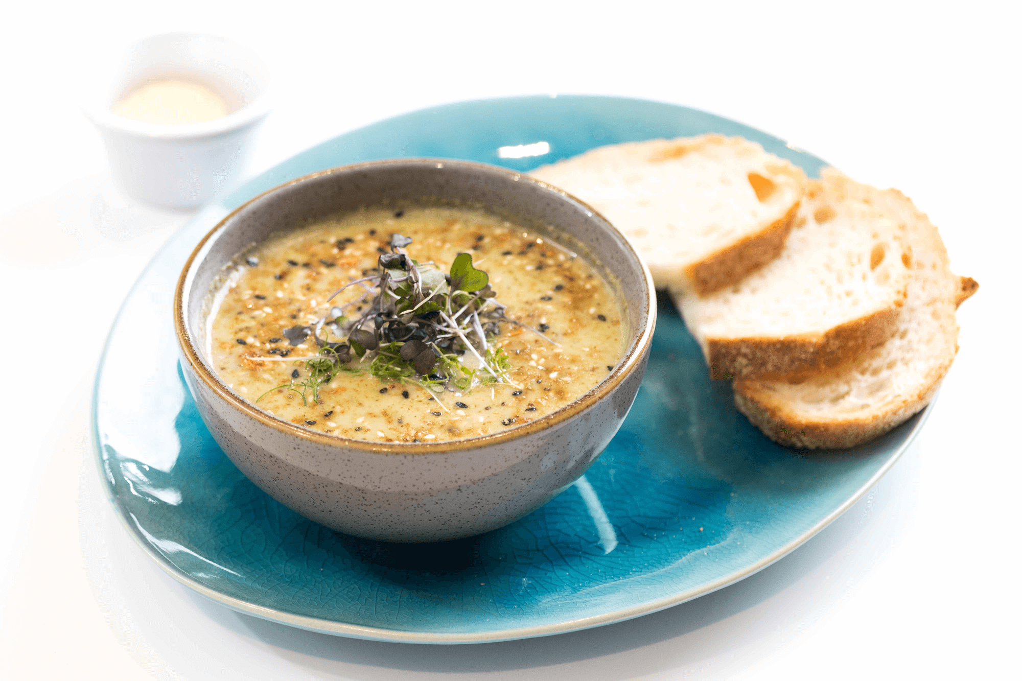 Avocado smash, pickled red chilli, tomato, nigella seed, turmeric on toasted sourdough 1 (wheat), 3, 10, 12
